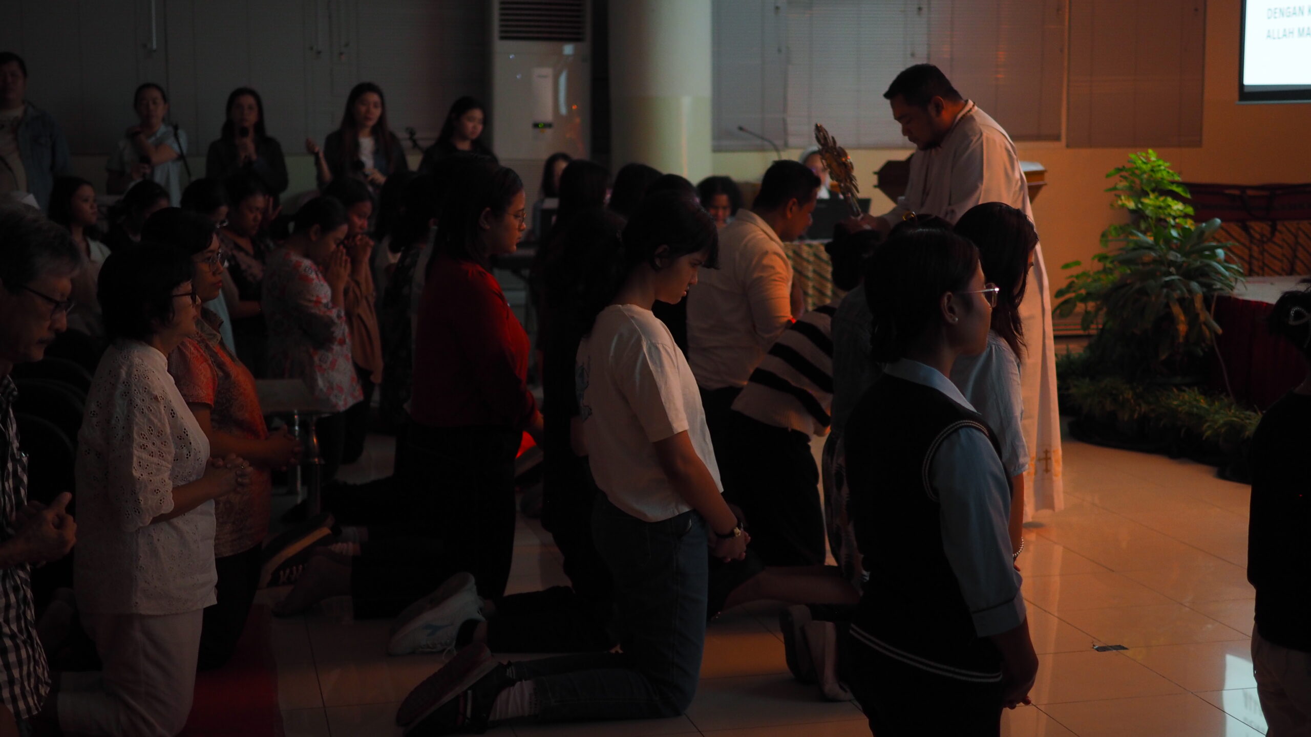Hampir semua yang hadir maju mendekat ke altar untuk meminta doa secara khusus. Romo Ignatius Priyambodo, CM., mengambil Sakramen dan mendekatkannya ke setiap mereka yang berlulut di depan sementara tim pujian menaikkan lagu-lagu yang mendukung suasana doa.