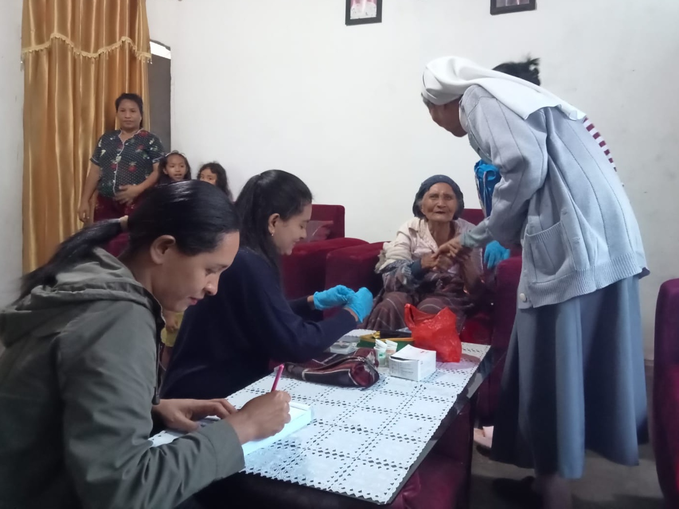 Para suster juga melibatkan para tenaga medis seperti dokter dan perawat saat melakukan kunjungan rumah, di mana mereka melakukan pemeriksaan secara menyeluruh kepada pasien. Mereka mengukur tanda-tanda vital/tekanan darah, memeriksa kadar kolesterol, asam urat dan gula darah untuk mengetahui faktor penyebab penyakit dan sekaligus sharing pola makan dan pola hidup yang sehat.