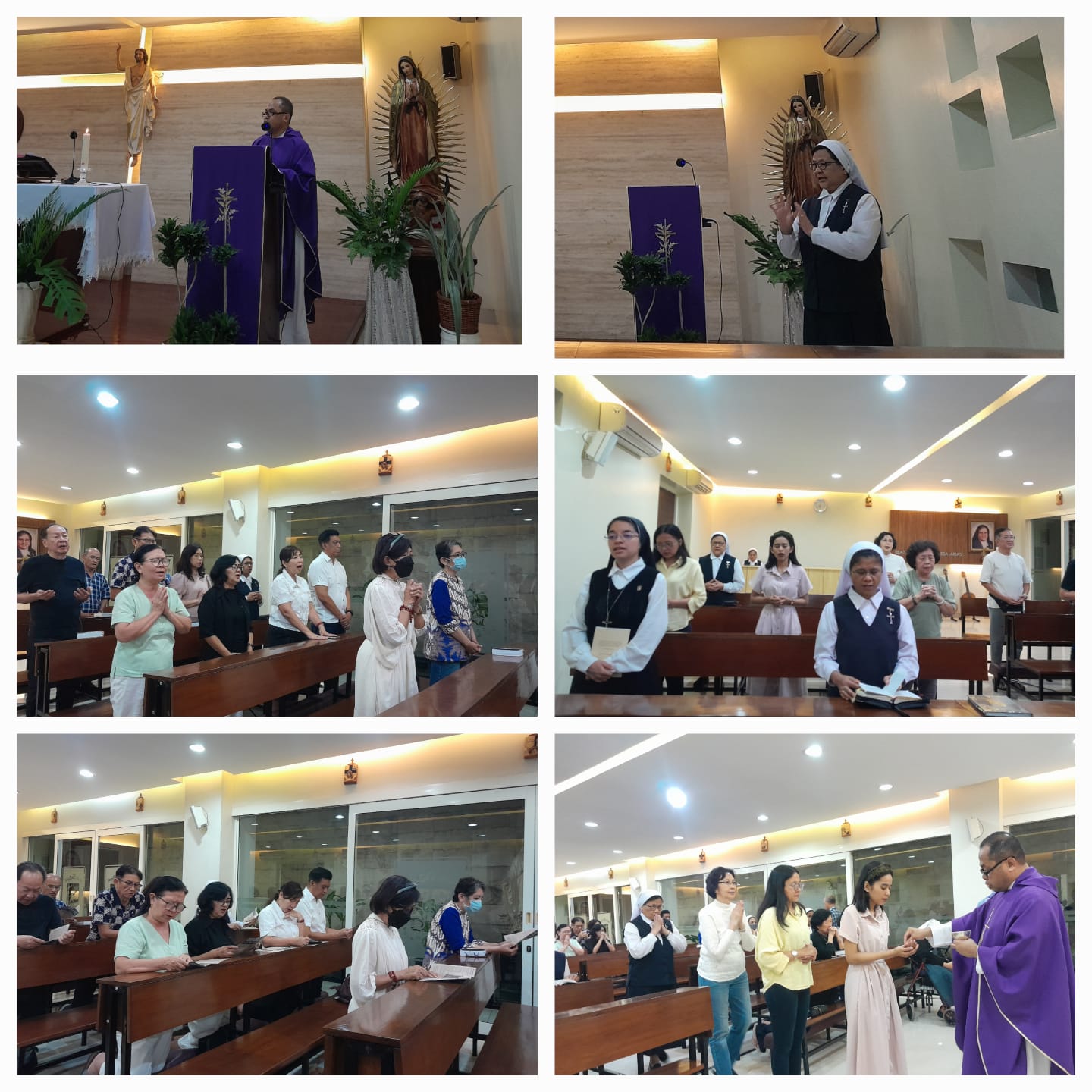 Para suster MC di komunitas Ngawi, membuka perayaan Yubileum dengan Misa Kudus di hall Klinik Pratama Santa Maria Guadalupe bersama umat dan mitra kerja. Romo Sebastianus Joko Purnomo mengatakan dalam homilinya, “Tujuan doa adalah menjalin relasi dengan Tuhan sebagai BAPA yang sangat memperhatikan setiap anak-Nya. Dalam berdoa kita harus memperhatikan, bahwa doa yang benar itu bukan untaian kata-kata indah dan puitis, bukan pula yang panjang rumusannya. Doa harus keluar dari kedalaman hati dan jiwa yang sadar bahwa dia dicintai oleh Tuhan. Dalam kaitannya dengan Tahun Yubileum yang dianugerahkan kepada Suster MC, semoga perayaan 75 tahun bukan hanya perayaan angka, tetapi kesempatan bagi kita untuk memperdalam hidup doa dan melakukan pertobatan.”