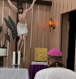 Setelah penyambutan yang khas dari para suster Misionaris Claris, Bapak Uskup dan para romo diajak untuk memberi salam pada Sang Tuan Rumah di kapel, mengucap syukur dan berdoa memohon berkat Tuhan bagi seluruh karya pelayanan di Klinik Santa Maria Guadalupe. Kemudian Bapak Uskup melihat secara langsung fasilitas pelayanan yang ada di klinik, serta menyapa para tenaga kesehatan yang setiap hari melayani masyarakat dengan penuh dedikasi.